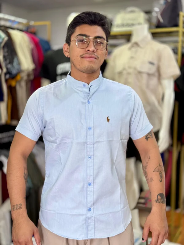 Camisa Manga Corta Ralph Lauren Polo Azul Cielo Gaspeado