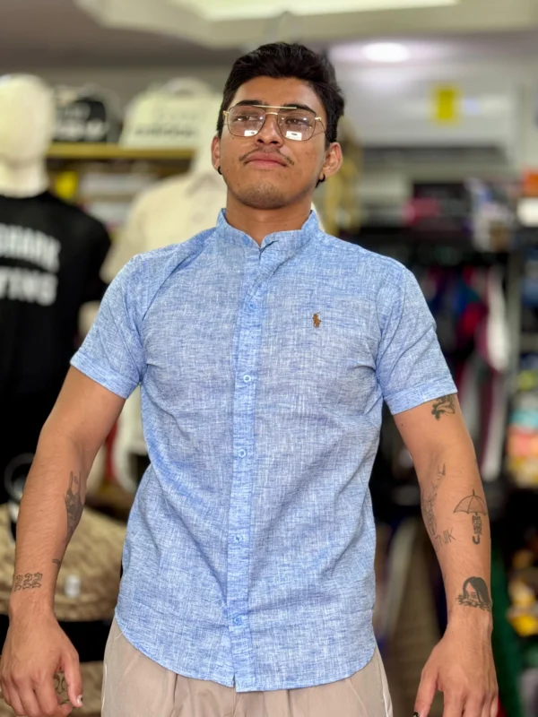 Camisa Manga Corta Ralph Lauren Polo Azul Marino Gaspeado