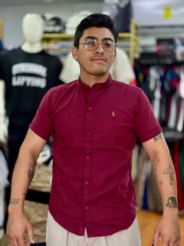 Camisa Manga Corta Ralph Lauren Polo Rojo Vino