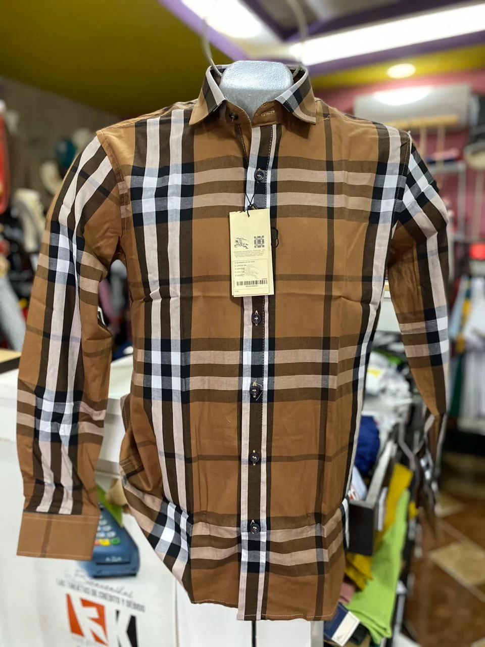 Camisda Manga larga De Color Cafe Oscuro Con Lineas Blancas Con Negro Tipo BB