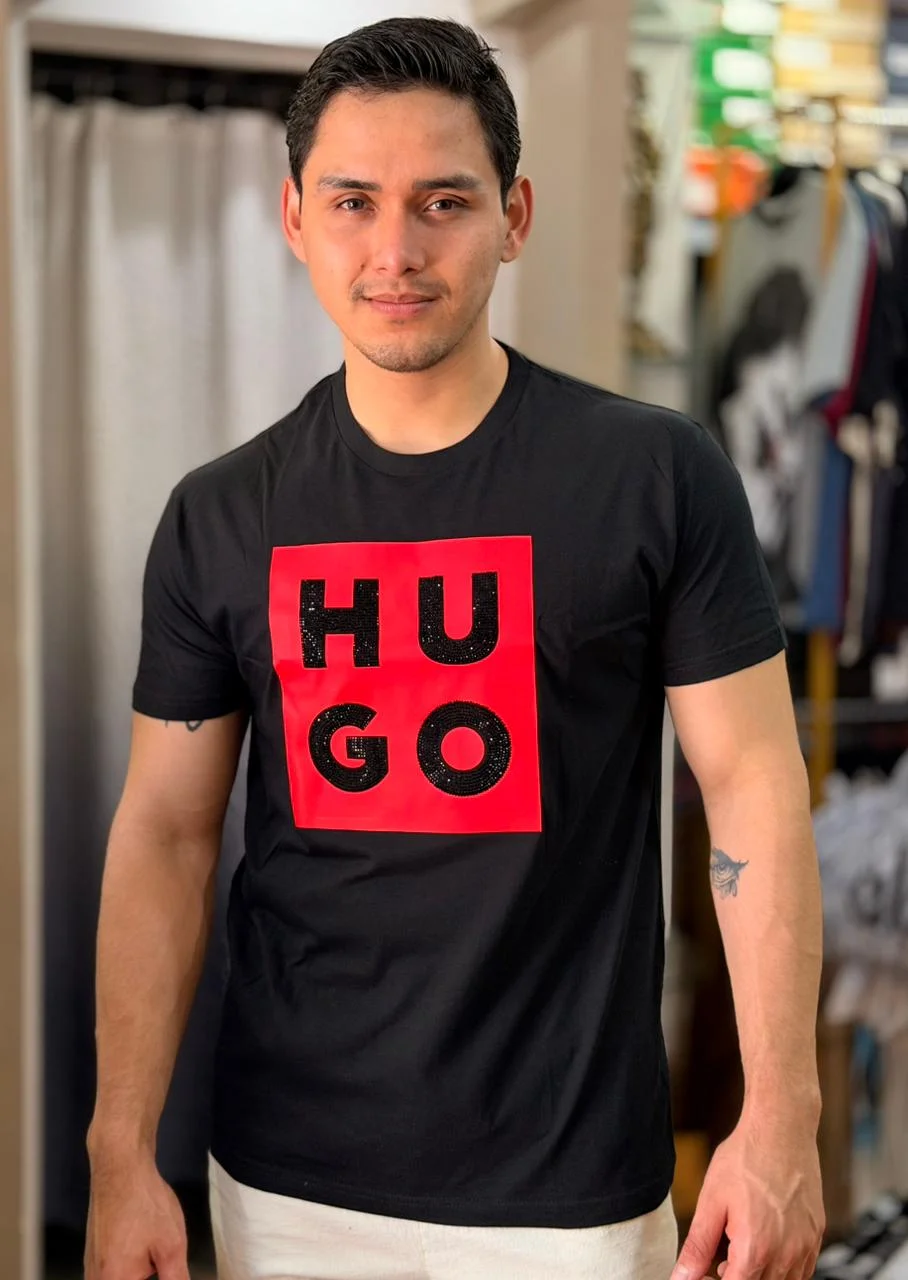 Palyera Cuello Redondo Estampado Especial Brillos Recuadro rojo HU GO