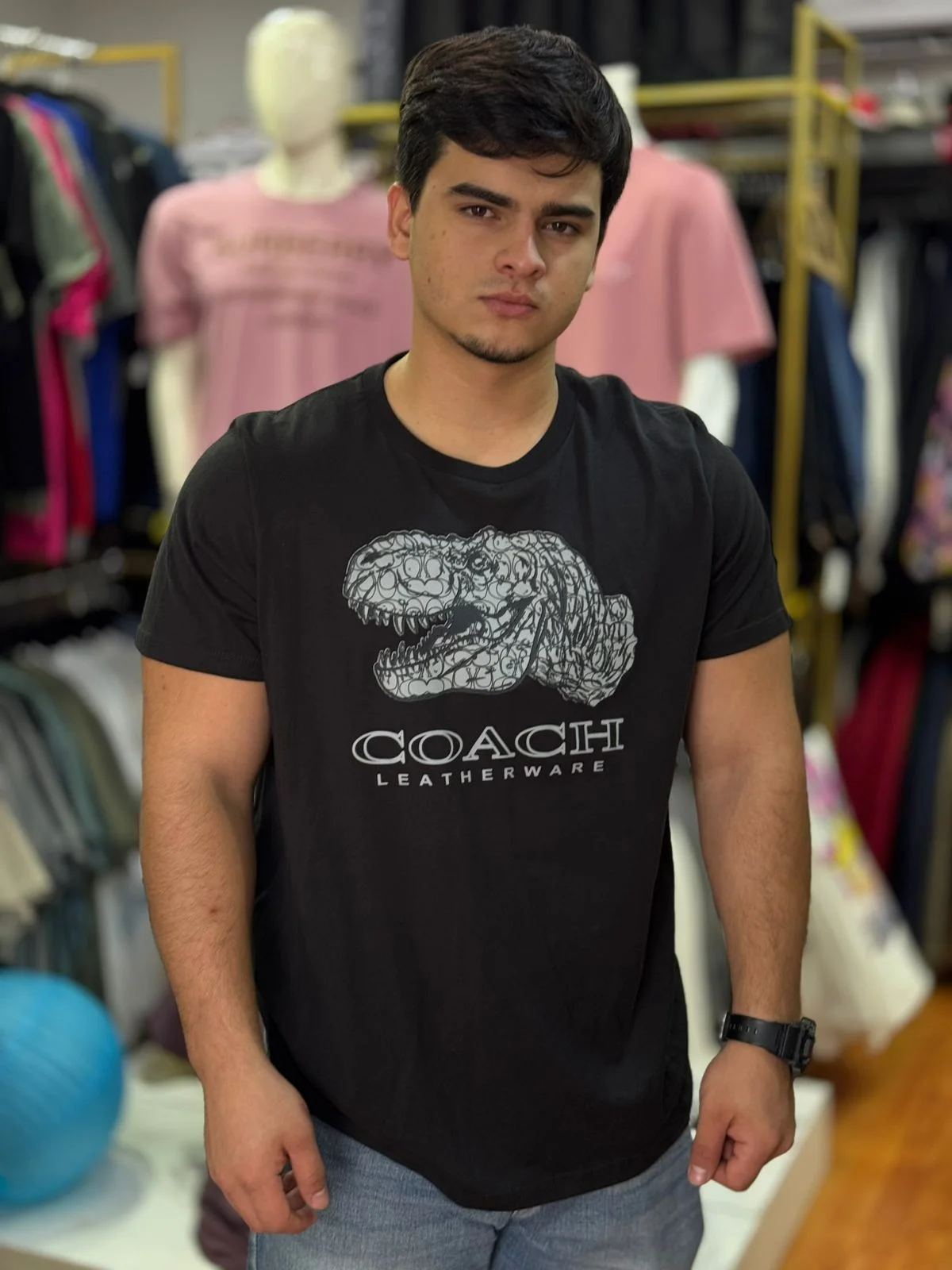 Playera Algodon Coach Negro Estampado Dinosaurio Gris Letras ”COACH”
