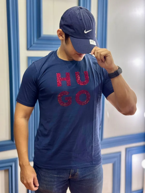 Playera Algodón Hugo Boss Azul Marino Destellos