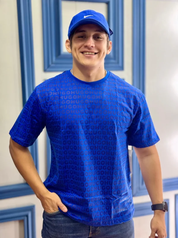 Playera Algodón Hugo Boss Azul Rey Monogramas