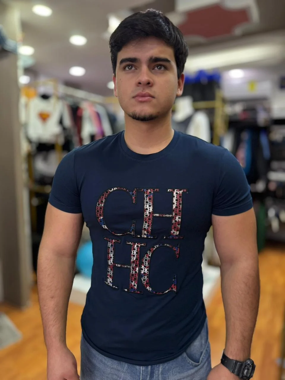 En la parte anterior de esta playera de manga corta aparece un estampado de la marca