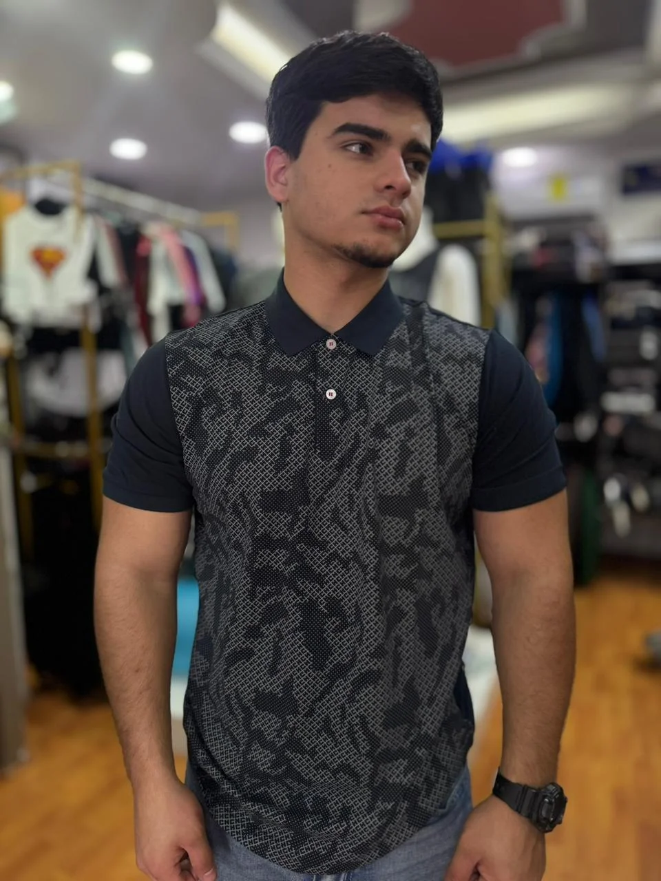 En la parte anterior de esta playera de manga corta aparece un estampado de la marca