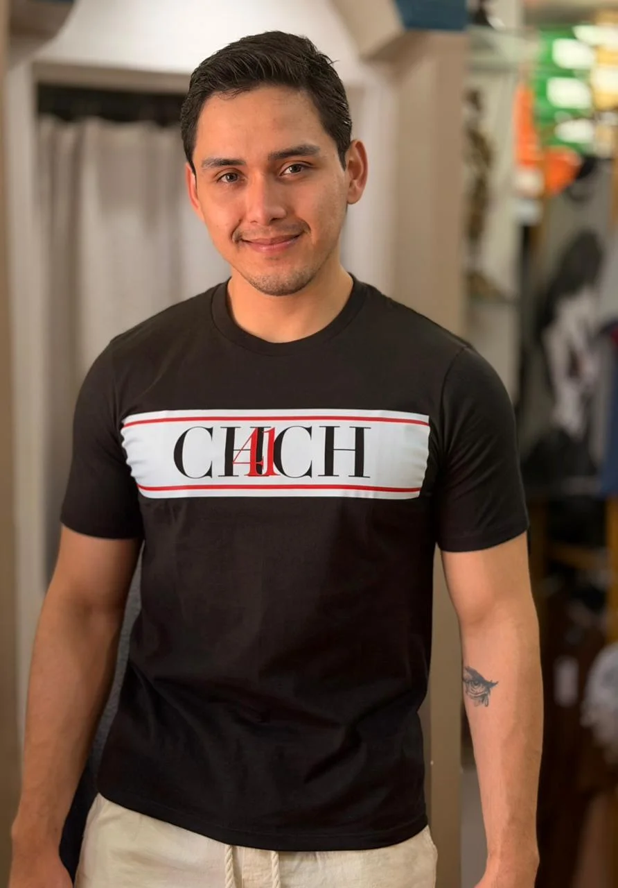 Playera Color Negra Estampado Horizontal Color Blanco Letras CH carolina