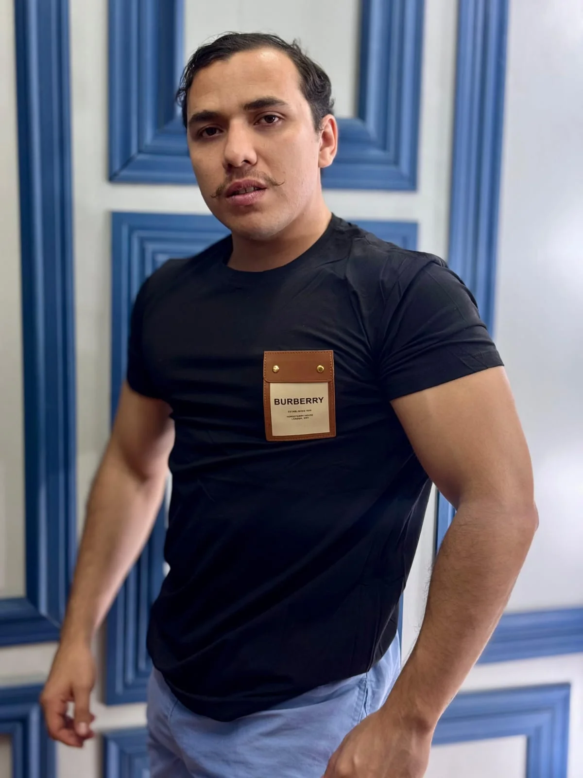 Playera Cuello Redondo BB Color Negra Bolsillo De Cuero