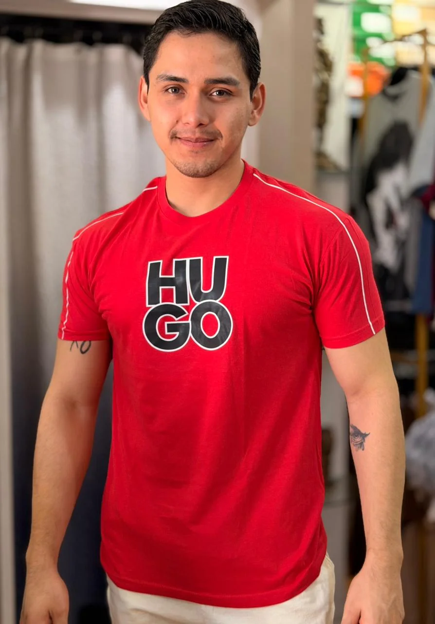 Playera Cuello Redondo Color Rojo Linea Al Hombre Letras Blancas
