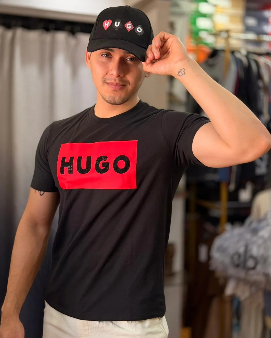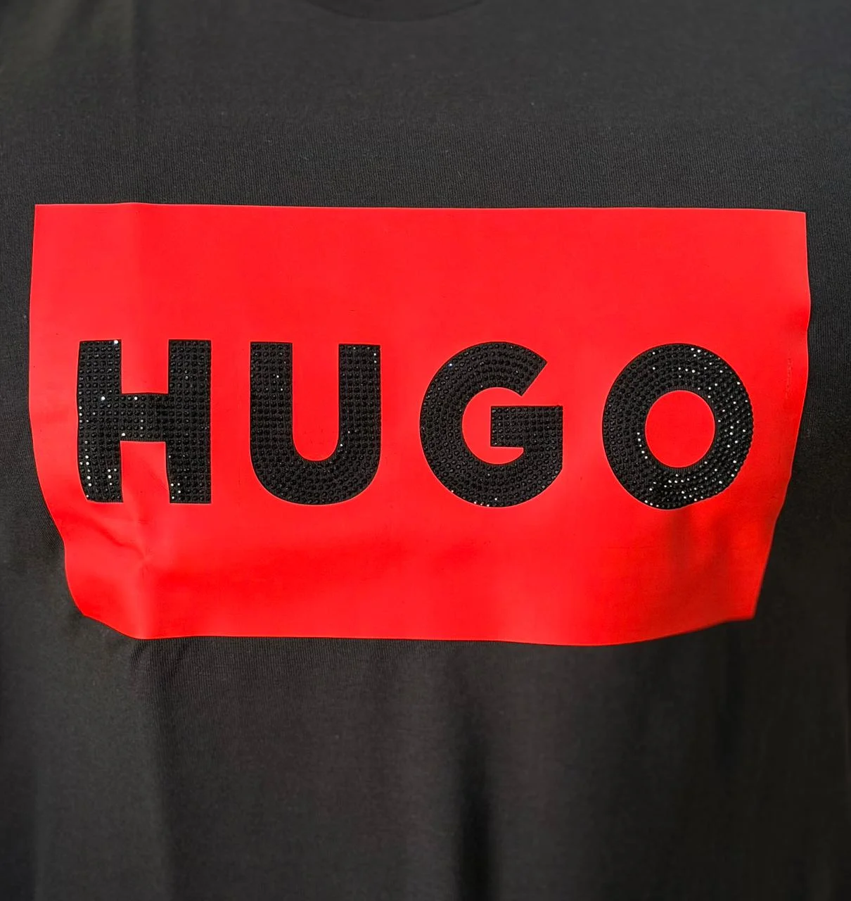 Playera Cuello Redondo Estampado Especial Letras De Brillo Hugo Recuadro Chico Color Rojo