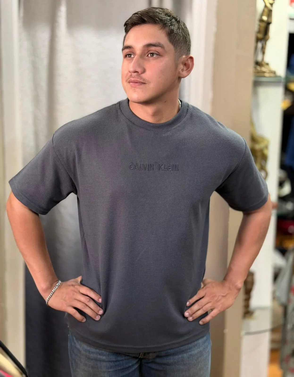 Playera De Cuello Redondo CK Color Gris Oscuro