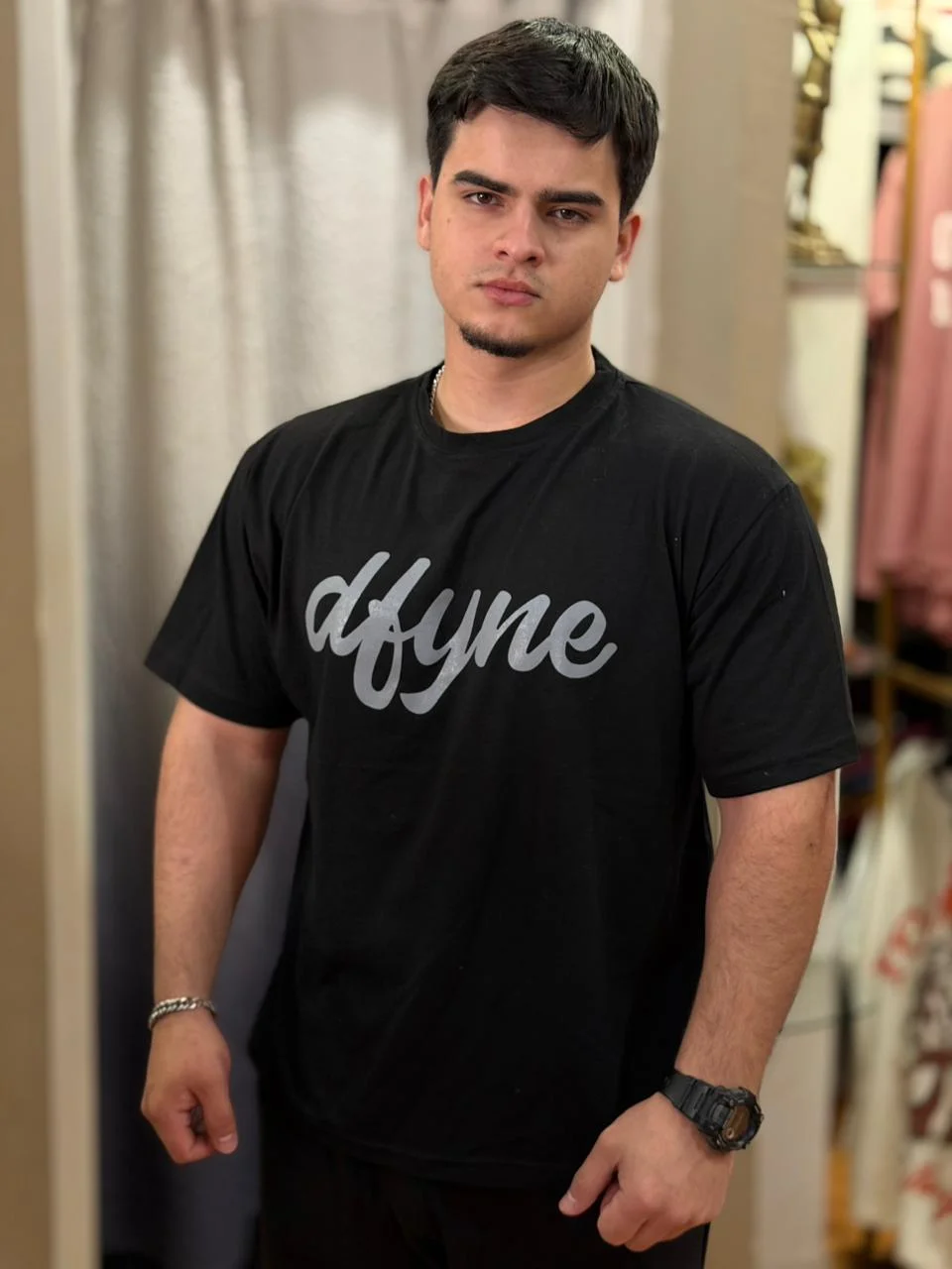 Playera Negra Estampado Cursiva Dfyne Horizontal